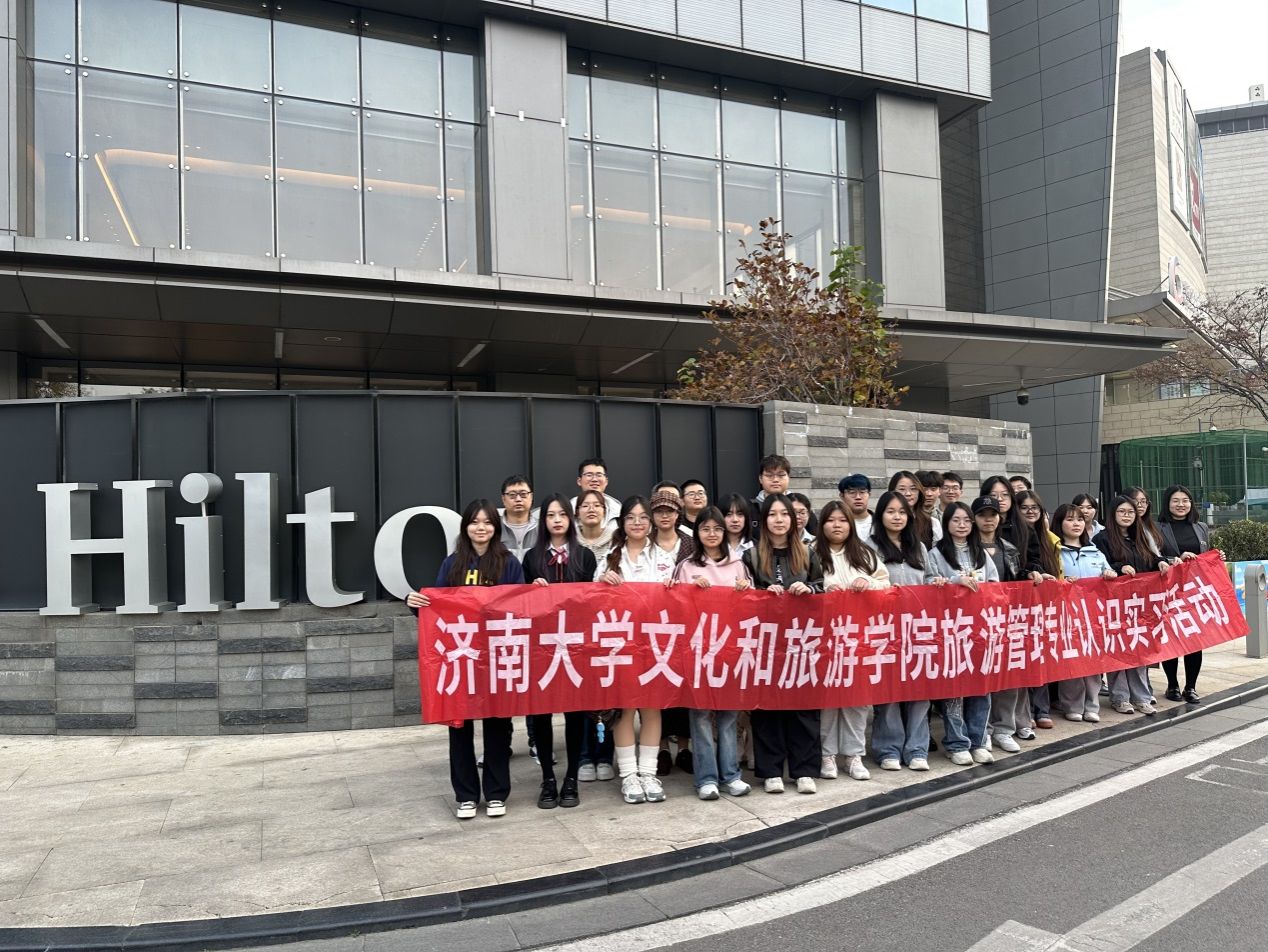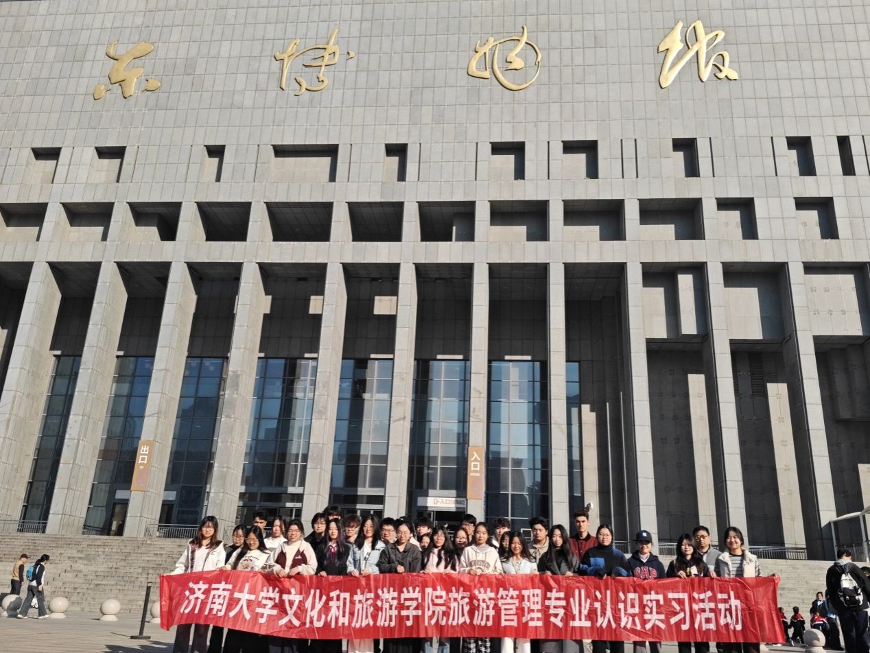 在济南绿地美利亚酒店和鲁能希尔顿酒店,学生通过实地参观、交流座谈与现场模拟等途径,学习了酒店的太阳城赌场、服务设施配置、各岗位的工作内容及服务要点等。在山东博物馆,学生现场分组模拟导游讲解,领略了山东的历史文化和地域特色,对文创商品设计与开发、业态布局及展品数字化展示进行了全面了解。在大明湖景区,学生对景区旅游资源的分布、功能分区与商业设施进行了深入考察,并分组开展了关于大明湖景区新业态与旅游新市场的问卷调研工作。