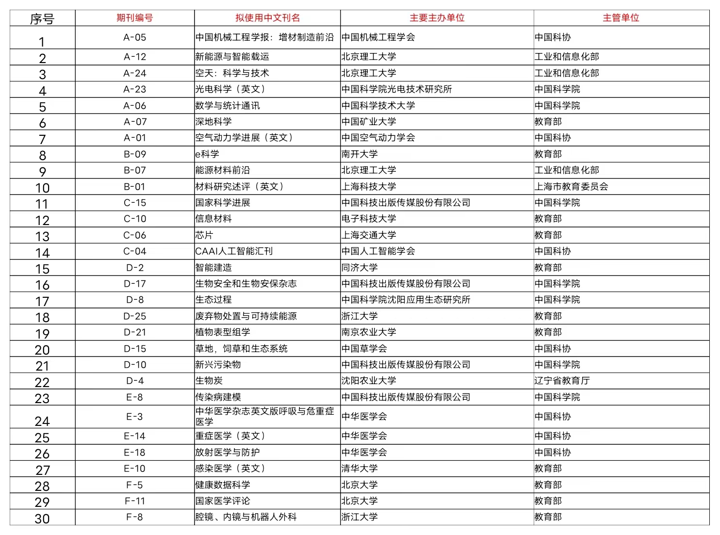 2020年度中国科技期刊卓越行动计划高起点新刊入选项目