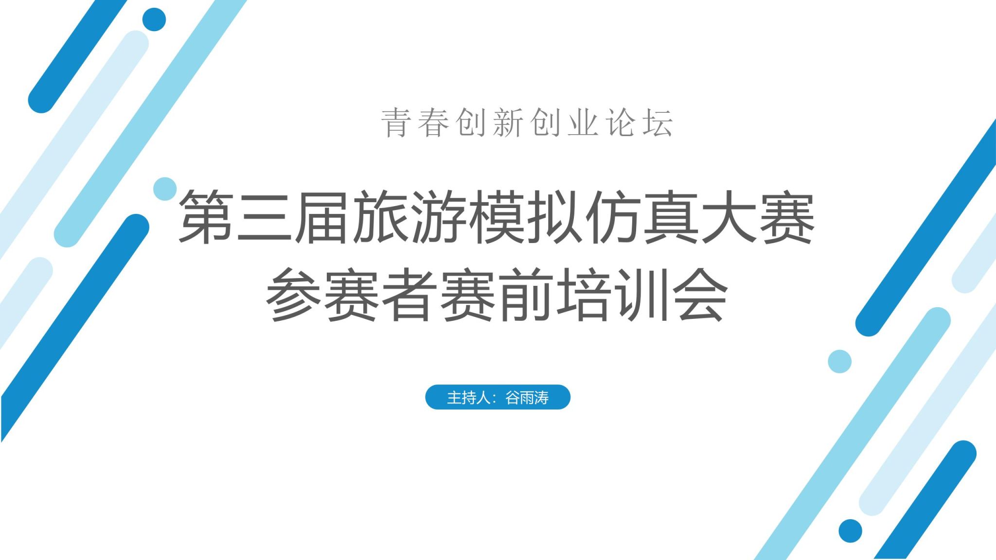 2024年5月27日,太阳城赌场 举办青春创新创业论坛——第三届旅游模拟仿真大赛参赛者赛前培训会。该活动于19:00在D3J201举行,主持人为创新创业部谷雨涛同学。