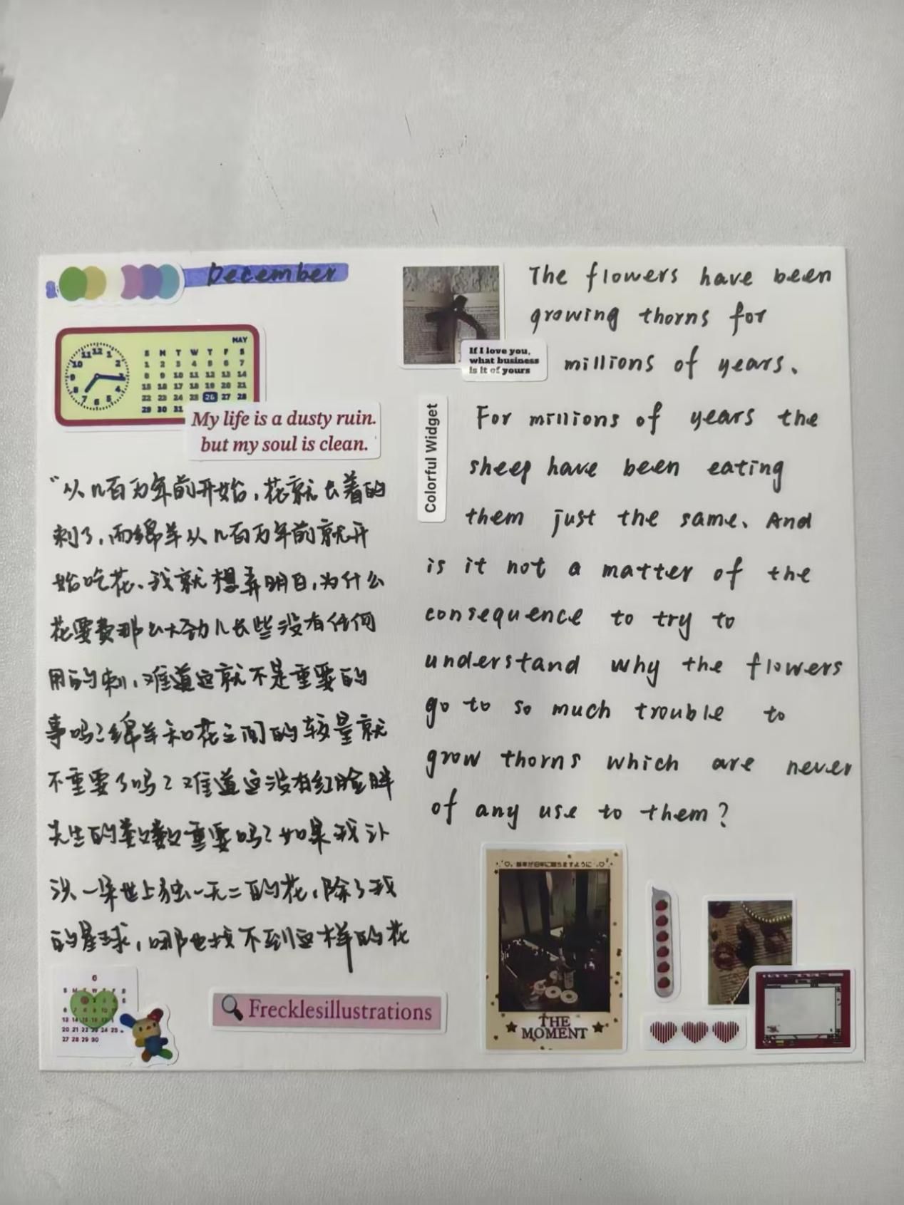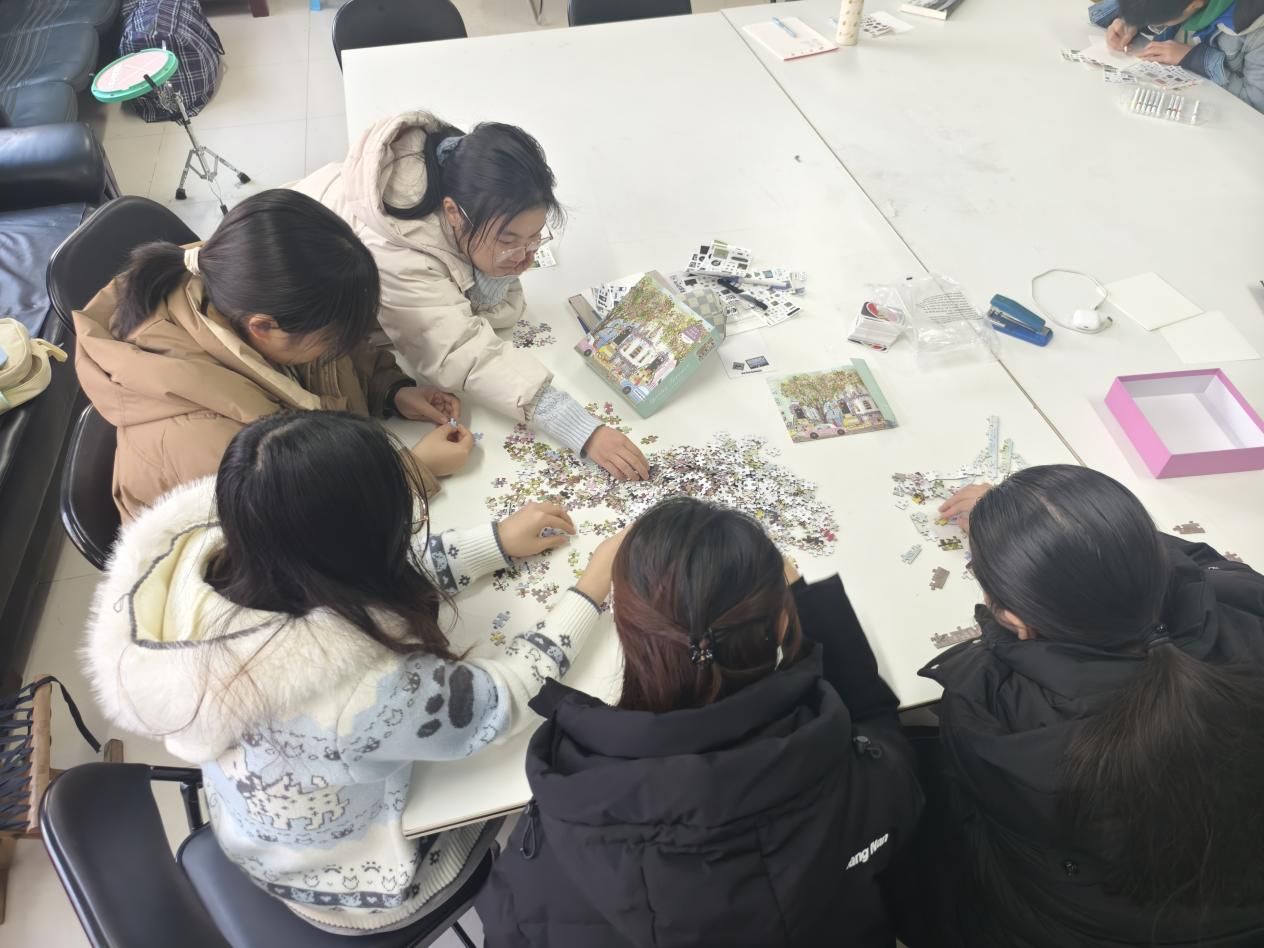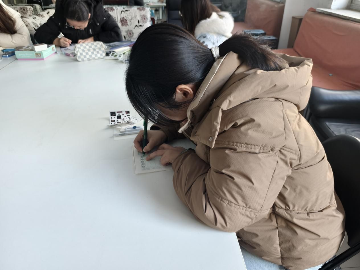 在最后的自由活动时间,同学们可根据兴趣选择拼图、手账创作、书写字帖等多种形式进行创意表达。通过动手实践,将学业与生活中的无形压力转化为有形的作品,在专注创作的过程中实现情绪的梳理与释放。