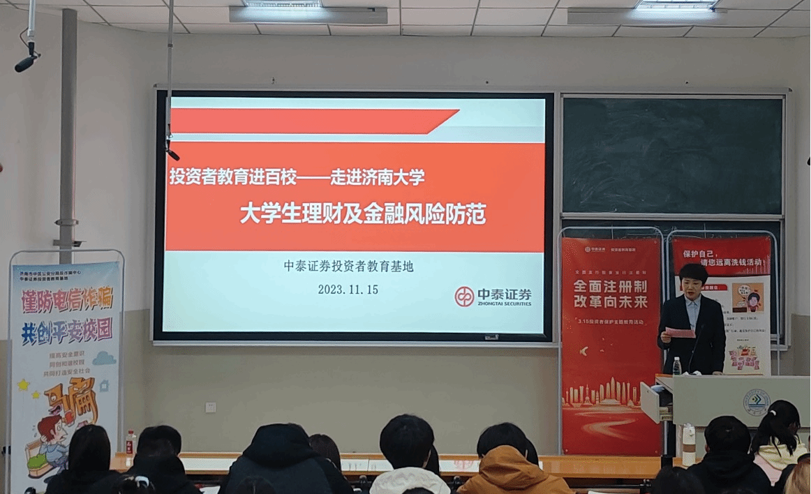 与中泰证券投教基地于济南大学舜耕校区第三教学楼202教室携手开展“大学生理财金融风险防范”知识讲座,太阳城赌场