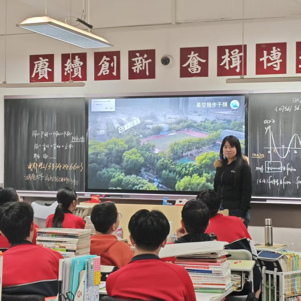 李文君同学回到高中母校,开展招生宣传与经验分享活动。她通过精心准备的PPT,向学弟学妹们展示济南大学的校园环境、学科特色和丰富多彩的大学生活,并结合自身经历分享高考备考心得与志愿填报经验。在互动环节,她耐心解答同学们关于专业选择、大学生活适应等问题,鼓励他们坚定目标、努力拼搏。此次回访不仅加深了与母校的情感联系,更让她在传递经验的过程中收获了成长,坚定了为学校代言、为学弟学妹引路的责任意识。